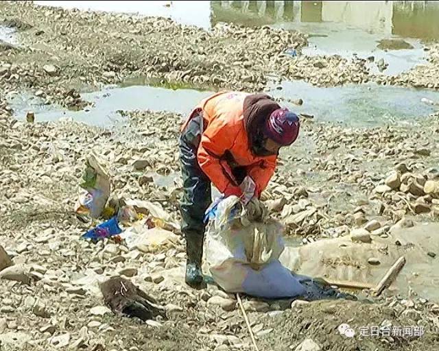 3月的定日,寒風(fēng)依舊凌冽,河道依舊冰封,河水依舊刺骨。為維護定日的母親河,還碧水與藍天。19日,定日縣國策環(huán)保的幾名環(huán)衛(wèi)工作者,頂著寒風(fēng),破冰深入到冰冷刺骨的協(xié)格爾河中打撈清理各種生活白色垃圾。他們當(dāng)中一位60多歲的老大爺,不顧氣候的寒冷和自己年老體弱的身體,邁著蹣跚的步伐,艱難的在河中破冰前行,拿著簡易的工具,清理著河中各種垃圾。