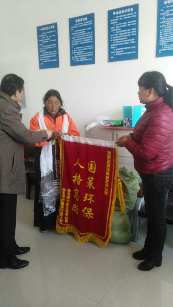 2017年3月27日,我公司環(huán)衛(wèi)工人在工作期間拾到某出租公司重要資料,及時與出租車公司取得聯(lián)系并歸還。該出租車公司領(lǐng)導(dǎo)為表達謝意,專程為我公司送來錦旗一面,并親自為這名環(huán)衛(wèi)工人獻上哈達和現(xiàn)金1000元作為感謝;同時對我公司這位環(huán)衛(wèi)工人拾金不昧的精神和我公司的管理方式贊不絕口。