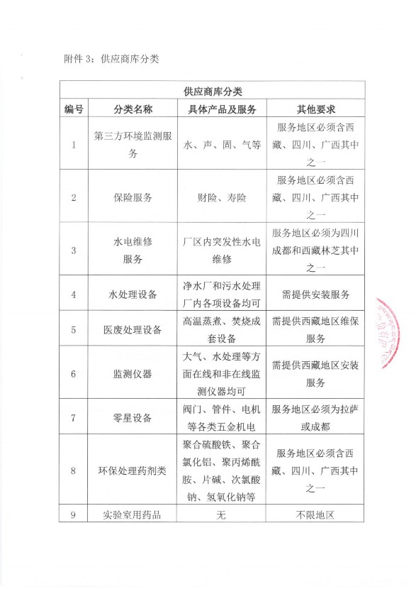 為規(guī)范西藏國策環(huán)??萍脊煞萦邢薰荆ㄒ韵潞喎Q國策環(huán)保或公司)采購行為,加強采購管理,維護公司采購當(dāng)事人的合法權(quán)益,更好地與廣大供應(yīng)商合作,依據(jù)公司采購管理、供應(yīng)商管理有關(guān)制度的規(guī)定,公司現(xiàn)征集采購供應(yīng)商入庫登記,以建立規(guī)范完整的供應(yīng)商信息庫。歡迎各企業(yè)(供應(yīng)商)踴躍入庫,現(xiàn)將有關(guān)事宜通知如下: