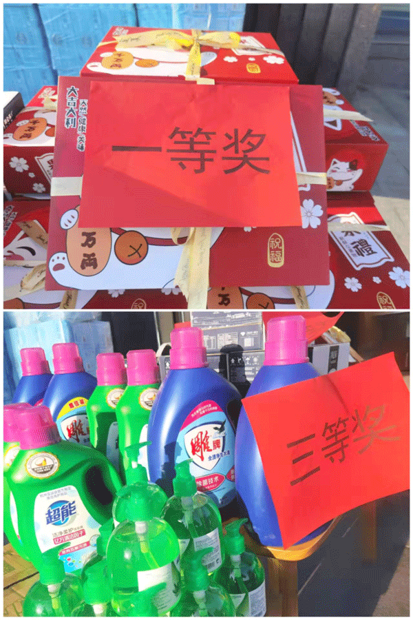 第四個游戲——“心有靈犀”,共20名參賽選手,兩人組隊(duì),參賽選手對面站立,間隔2米,選手抽取題目,抽題選手看到紙上的內(nèi)容將意思(比劃、提示語)傳達(dá)給另一位選手,另一個選手猜測是什么,答對后進(jìn)入下一道題,每輪2分鐘,最后計(jì)算猜的最多的隊(duì)。在活動中,比劃的人手舞足蹈,猜測的人語出驚人,更多的是旁觀者們還在旁邊有暗自提示,有幫忙比劃的。現(xiàn)場熱鬧非凡,再次將活動推向了最高潮?;顒右恢背掷m(xù)到晚上六點(diǎn)半,最后,分別評出了每項(xiàng)活動的前三名,并分發(fā)了獎品。